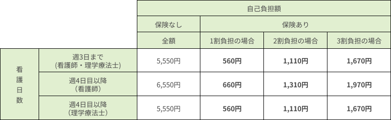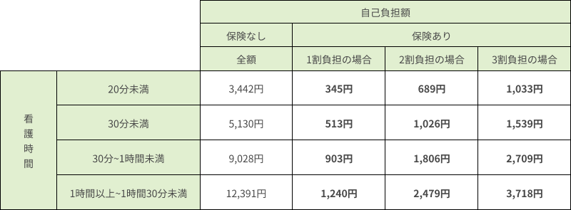 訪問看護の料金は市区町村によっても異なりますので、実際の利用料金は直接お問い合わせください。